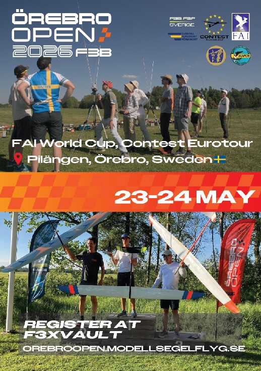 Ikaros RFK and the Swedish F3B community are very happy to invite international pilots to the 2026 Örebro Open F3B World Cup competition!